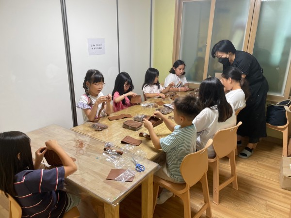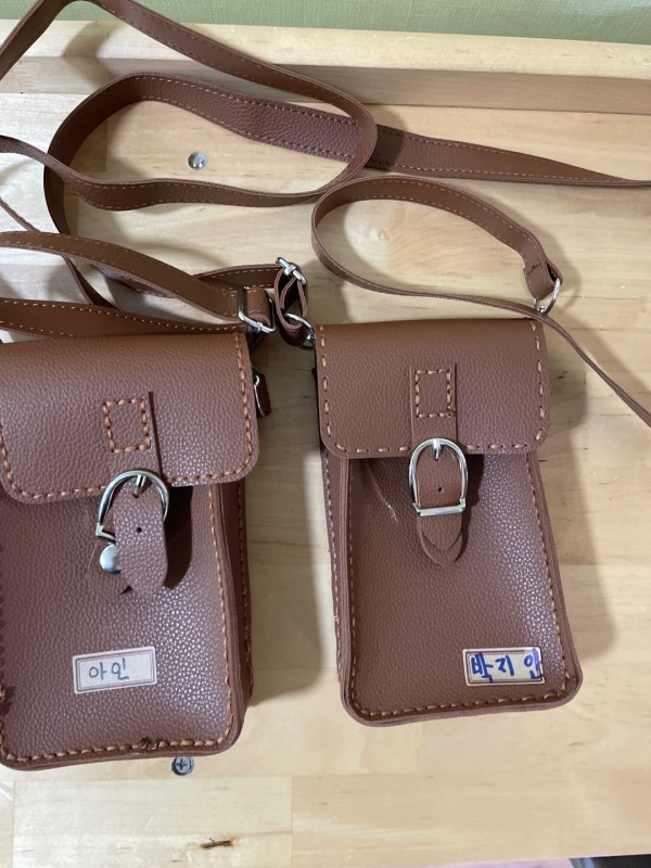 - 아이들이 가죽을 이용하여 자신의 가죽 버클 미니백을 만드는 활동을 했습니다